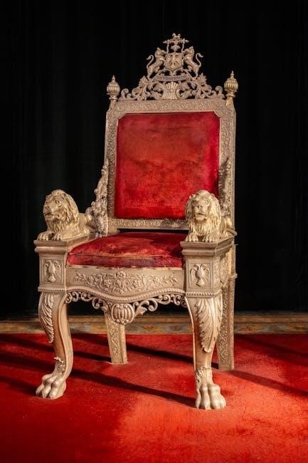 Aslan, the majestic lion, embodies wisdom, courage, and divine guidance. He serves as a mentor to the Pevensie children, leading them through Narnia’s challenges. His sacrifice and resurrection symbolize redemption and hope, showcasing his profound strength and compassion. Aslan’s calm demeanor and authoritative presence inspire trust, making him a central figure of moral and spiritual guidance. His actions highlight themes of sacrifice, forgiveness, and the triumph of good over evil, solidifying his role as a timeless symbol of courage and wisdom.